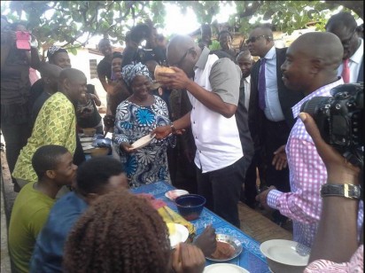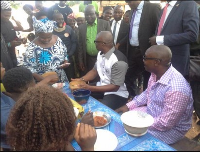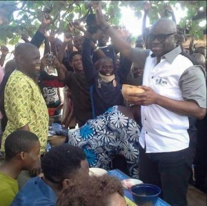 Governor Ayodele Fayose of Ekiti, popularly known for his social welfare programmes (Stomach infrastructure) was spotted at a Palm Wine Joint at Omisanjana area of Ado Ekiti on Thursday.